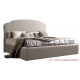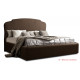 В этой кровати отсутствует изножье, есть только высокое изголовье фигурной формы. Если говорить о материале обивки, то это ткань из каталога итальянского производителя Novabuk.