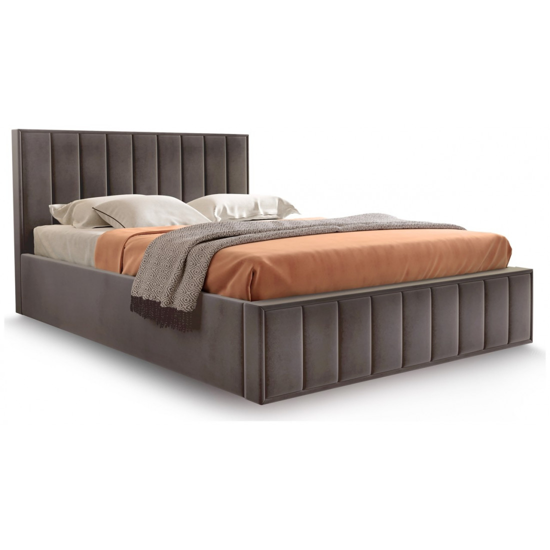 Кровать можно комплектовать ортопедическим основанием на пяти опорах или бельевым ящиком с подъемным ортопедическим основанием.