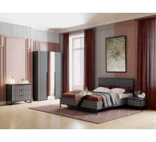 Коллекцию модульной спальни "Нора" отличает современный оригинальный стиль. Декоративная продольная фрезеровка на МДФ фасадах цвета "Графит" и опоры на металлокаркасе цвета "Черная эмаль" соответствуют модным тенденциям этого года в ведущих зарубежных коллекциях.