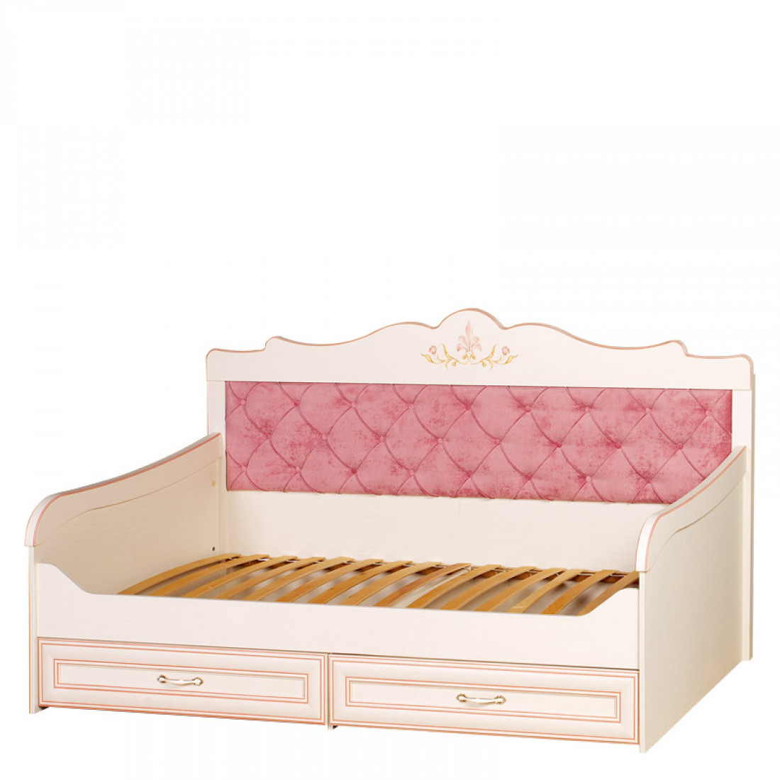 Корпус: ДСП, декор – кремовый белый. Основание кровати – ламели