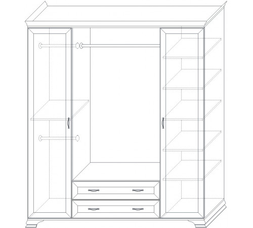 4-х дверный шкаф из коллекции для спальни «Сиена» подставляется в комплекте с боковыми фасадами, центральные двери (на выбор - зеркальные или глухие) поставляются отдельно от шкафа.