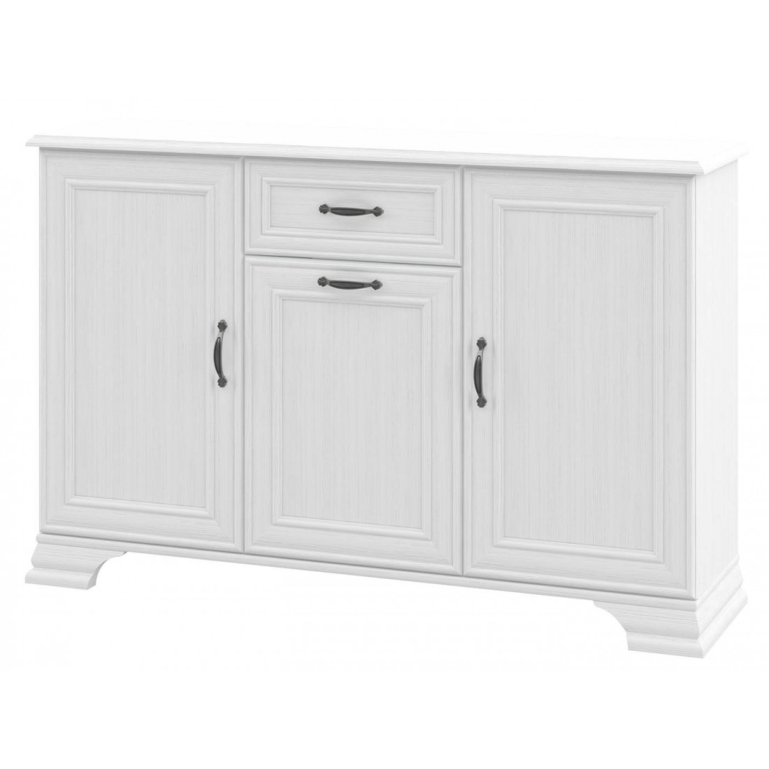 Тумба Юнона МН-132-15 от фабрики Мебель-Неман - универсальная тумба в классическом стиле с отделкой структурной фактуры, обрамленная рамочным фасадом, где металлические ручки выгодно подчёркивают стиль и изящество, всегда актуальна и востребована.